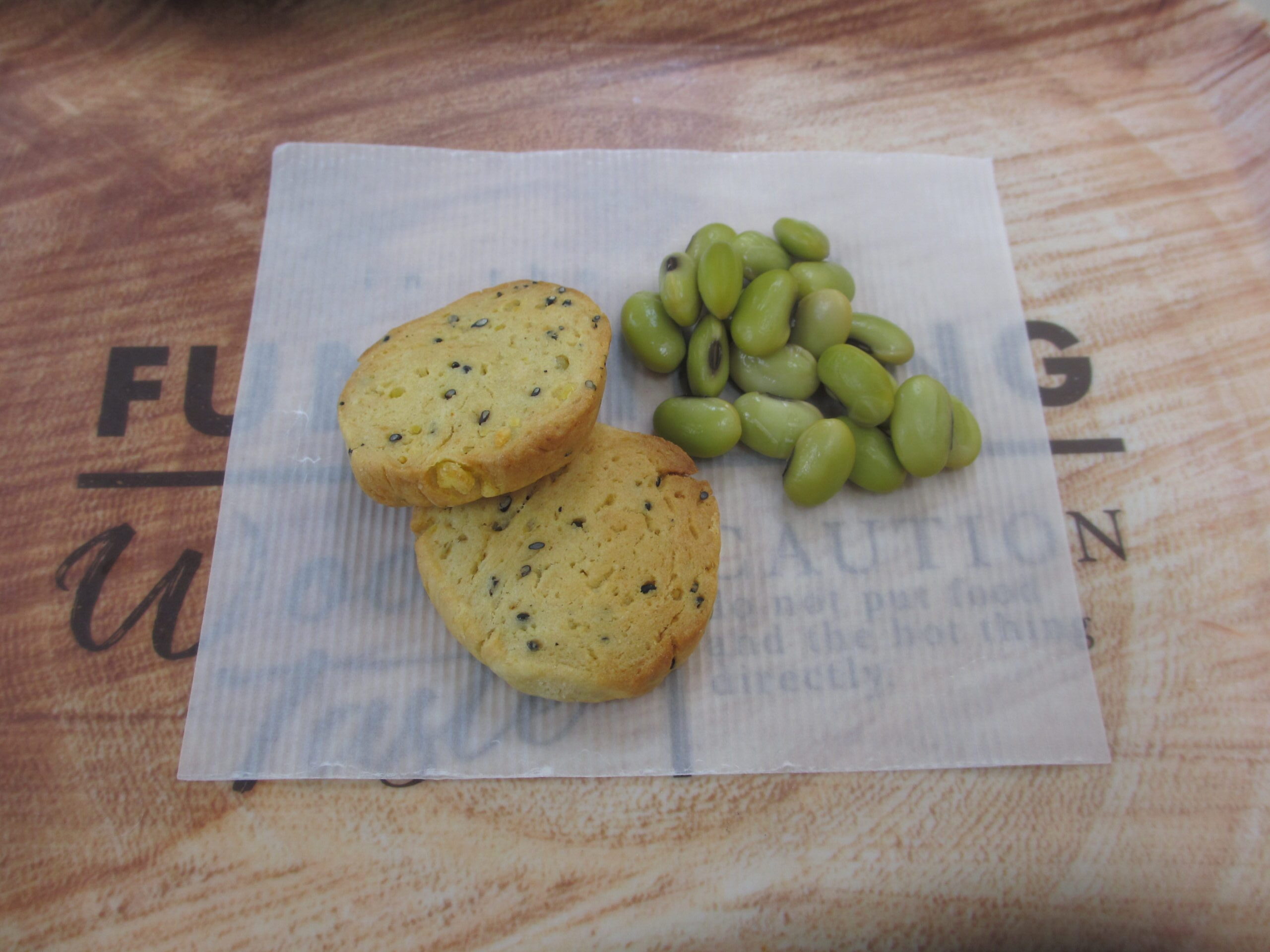 おやつ:牛乳 浸し豆 さつま芋クッキー