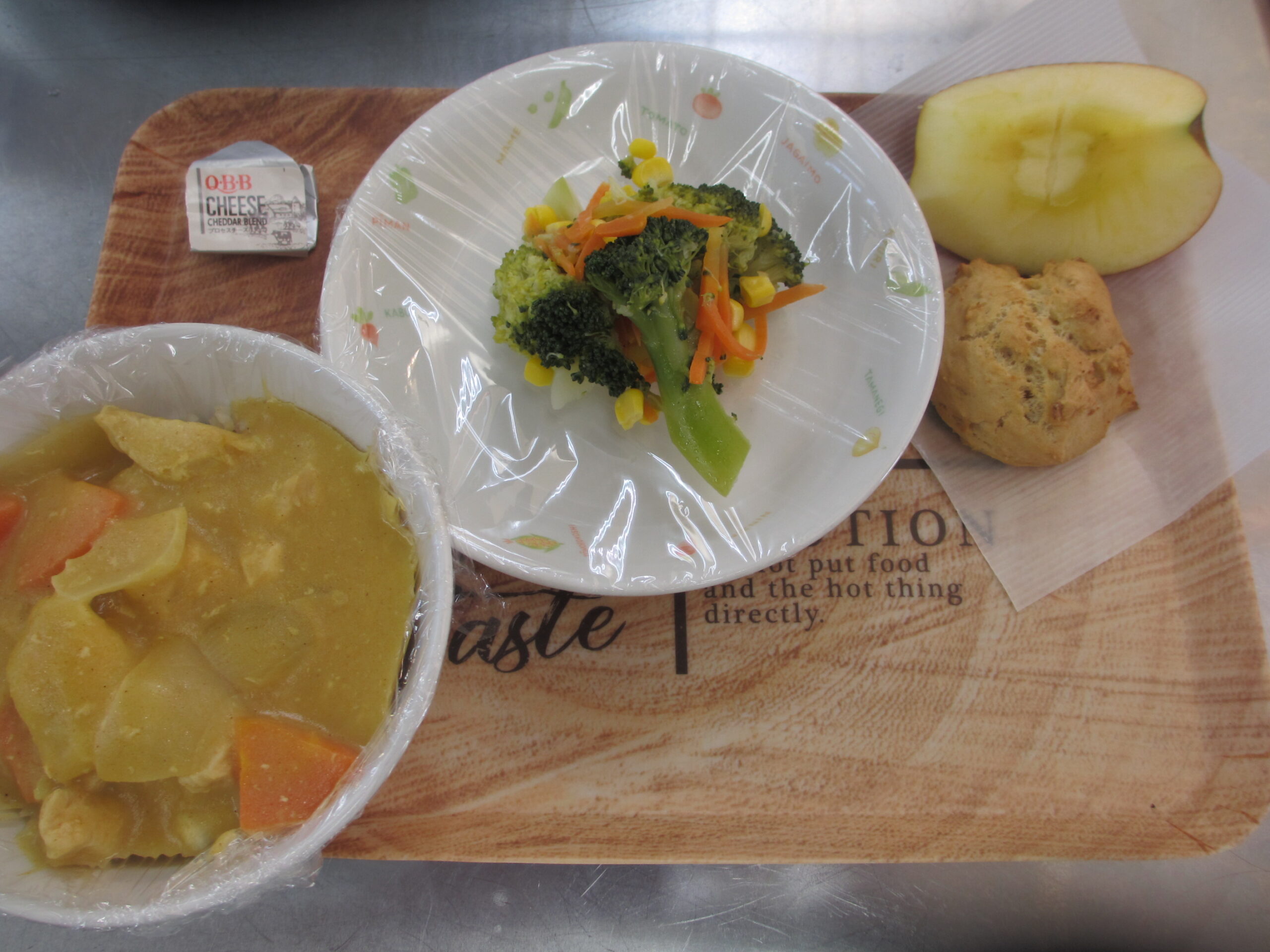 お昼:チキンカレー ブロッコリーサラダ チーズ