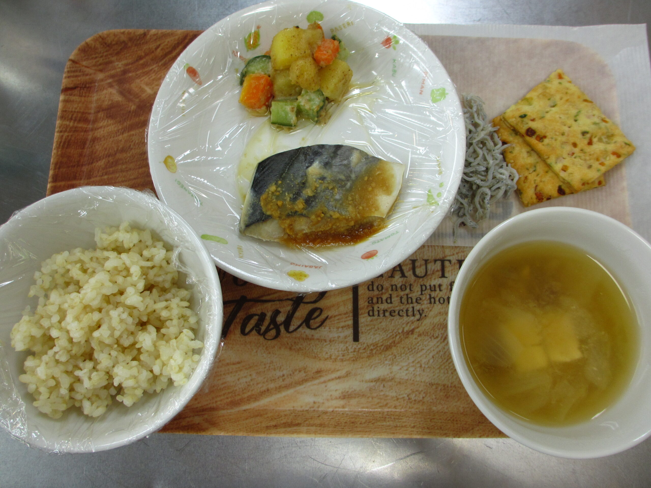 お昼:ご飯・蒸し魚のレモン味噌・ごまドレサラダ・味噌汁