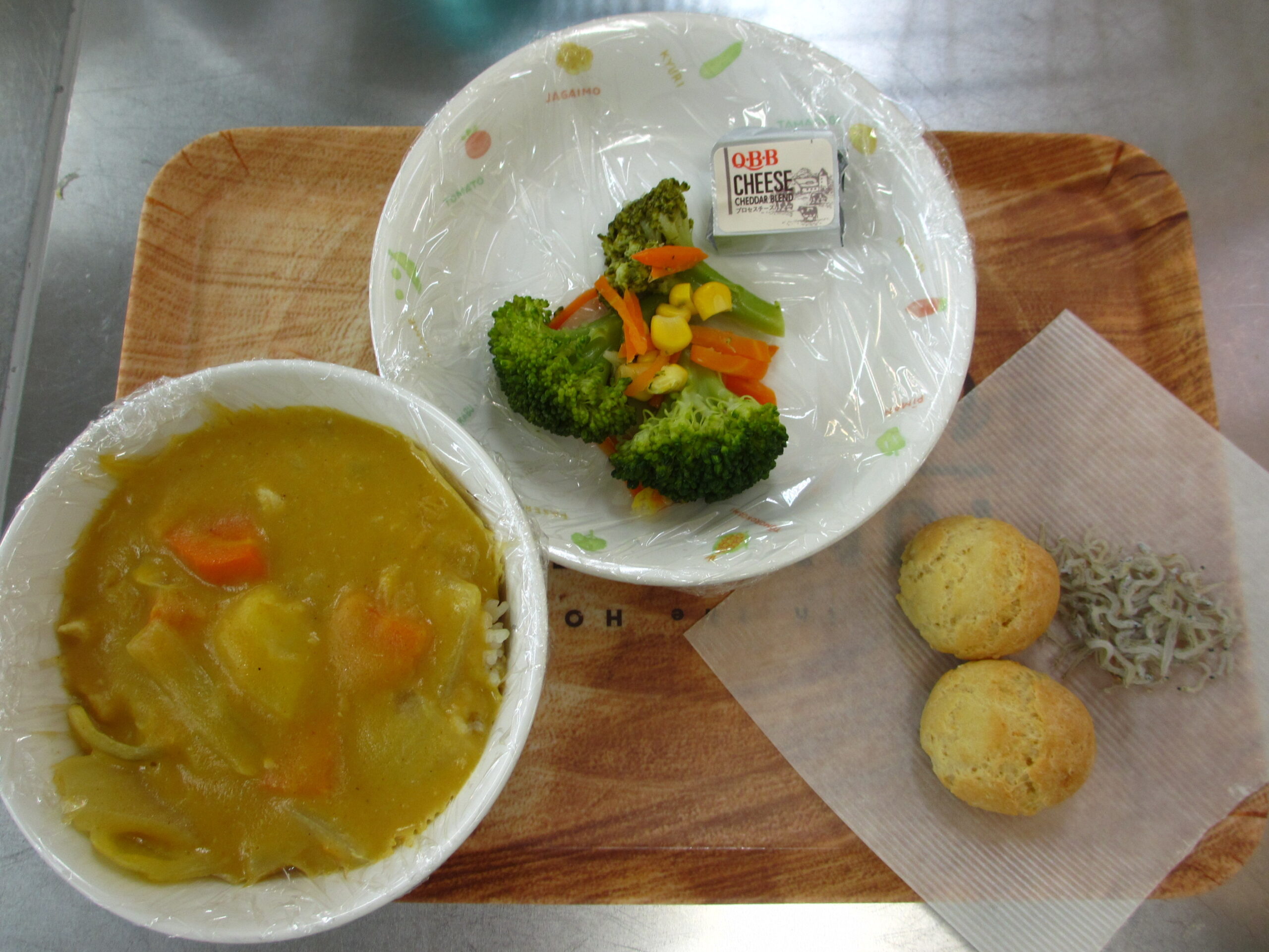 お昼:チキンカレー・ブロッコリーサラダ・チーズ
