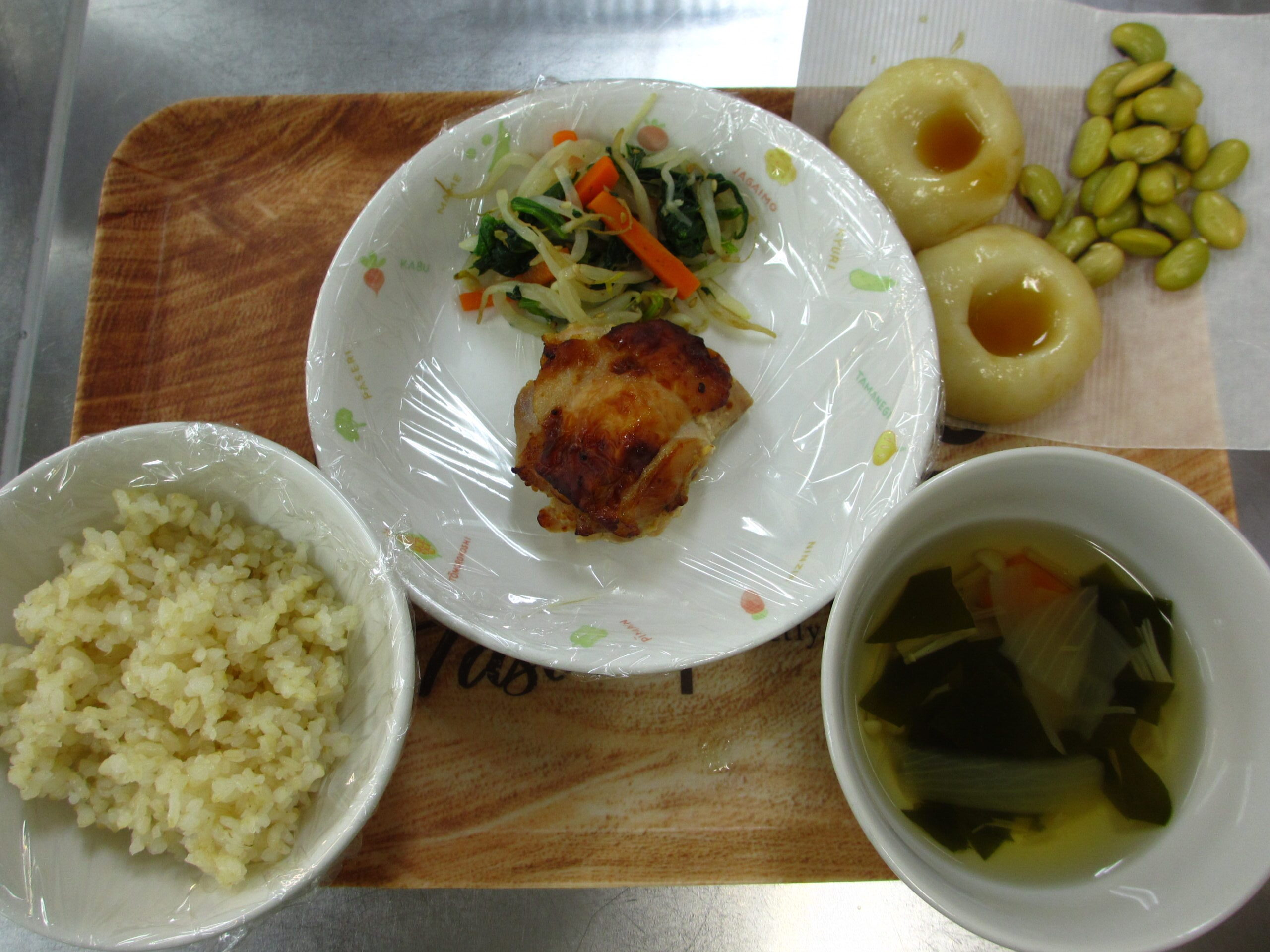 お昼:ご飯・鶏の味噌焼き・ナムル・すまし汁