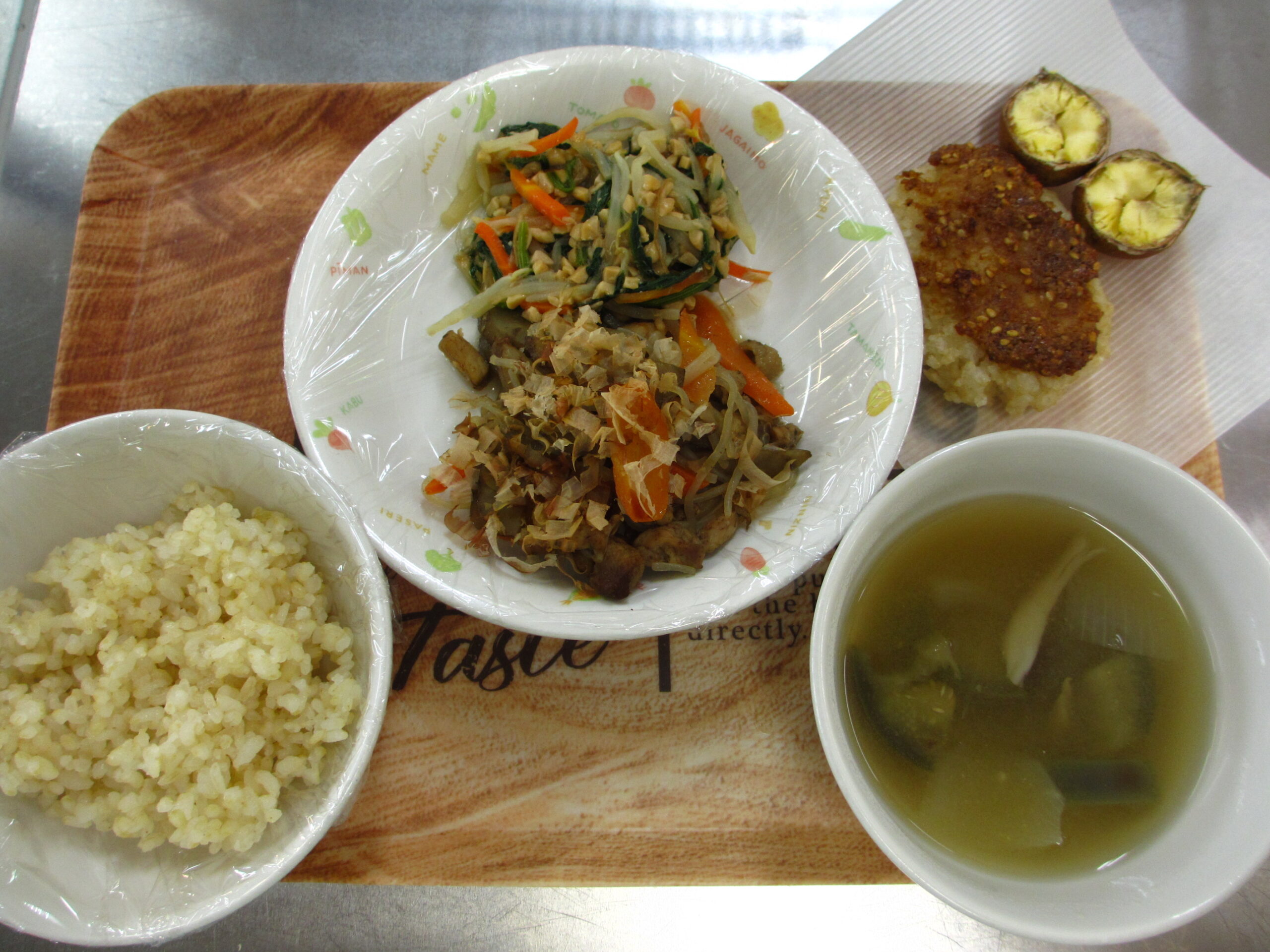 おやつ:麦茶 浸し豆 きびおにぎり