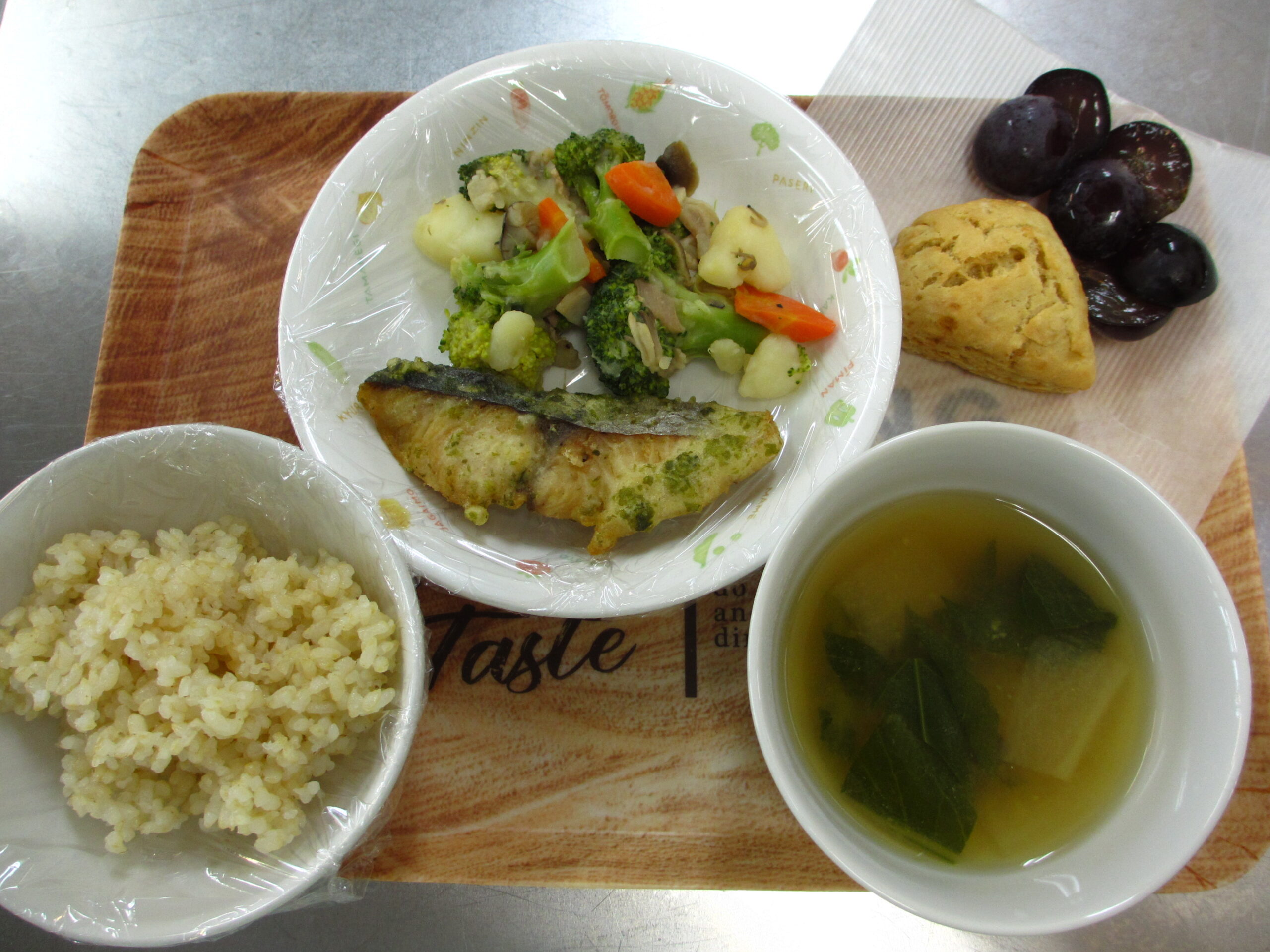 おやつ:牛乳 巨峰 お豆腐スコーン