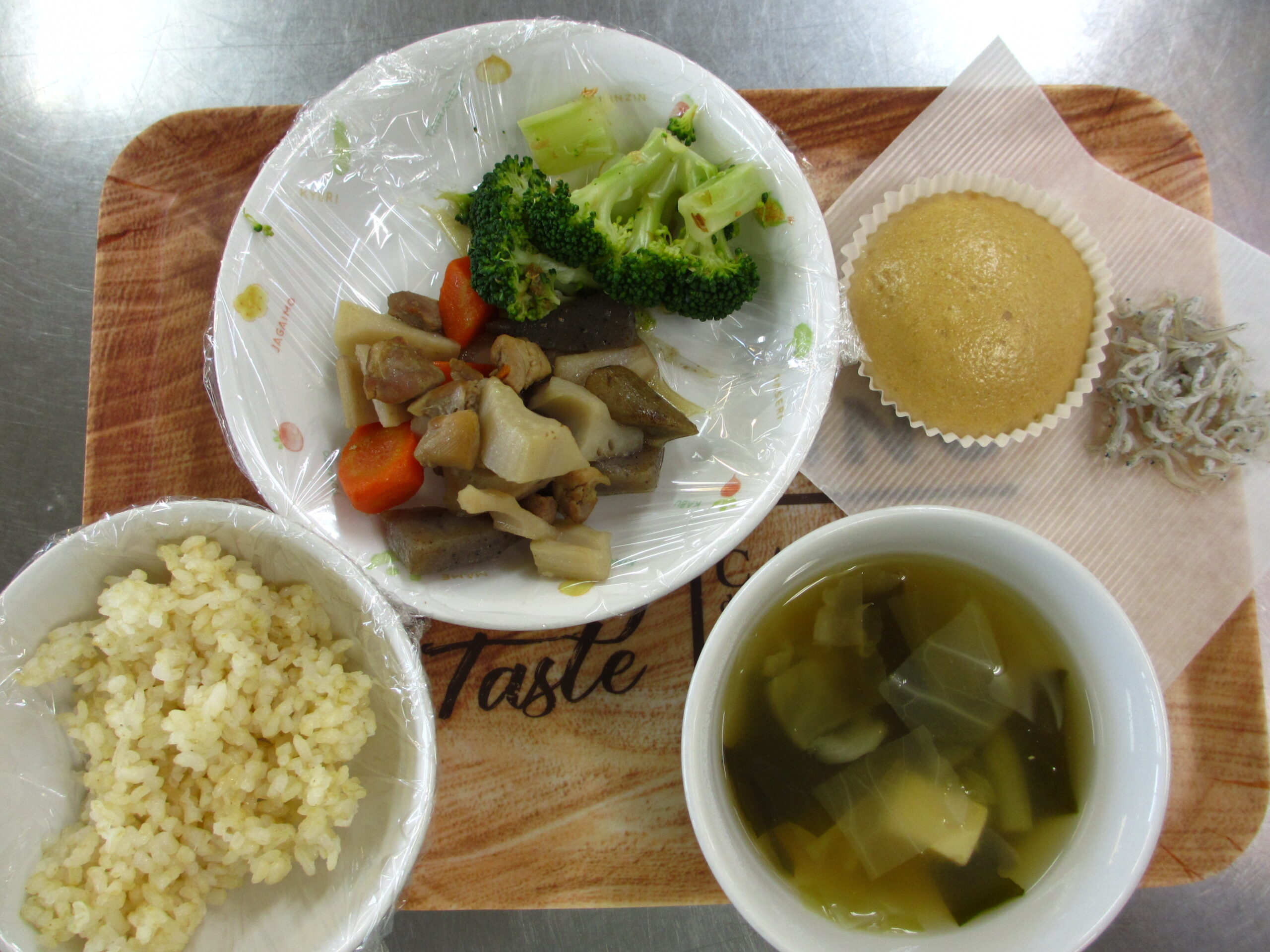 おやつ:牛乳 ちりめん 米粉蒸しパン