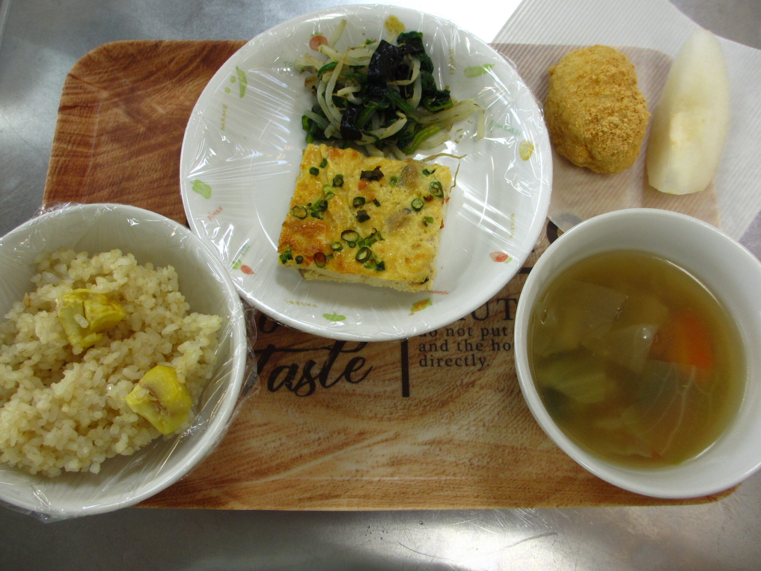 お昼:栗ご飯 擬製豆腐 のり和え 味噌汁