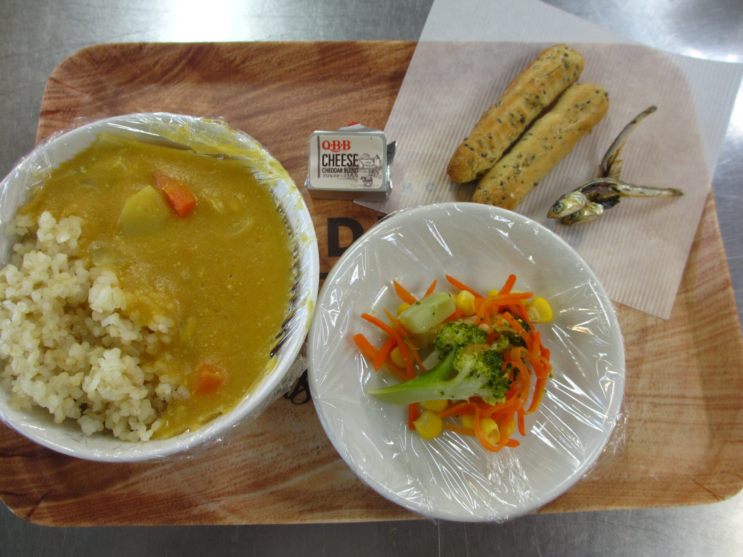 お昼:チキンカレー ブロッコリーサラダ チーズ
