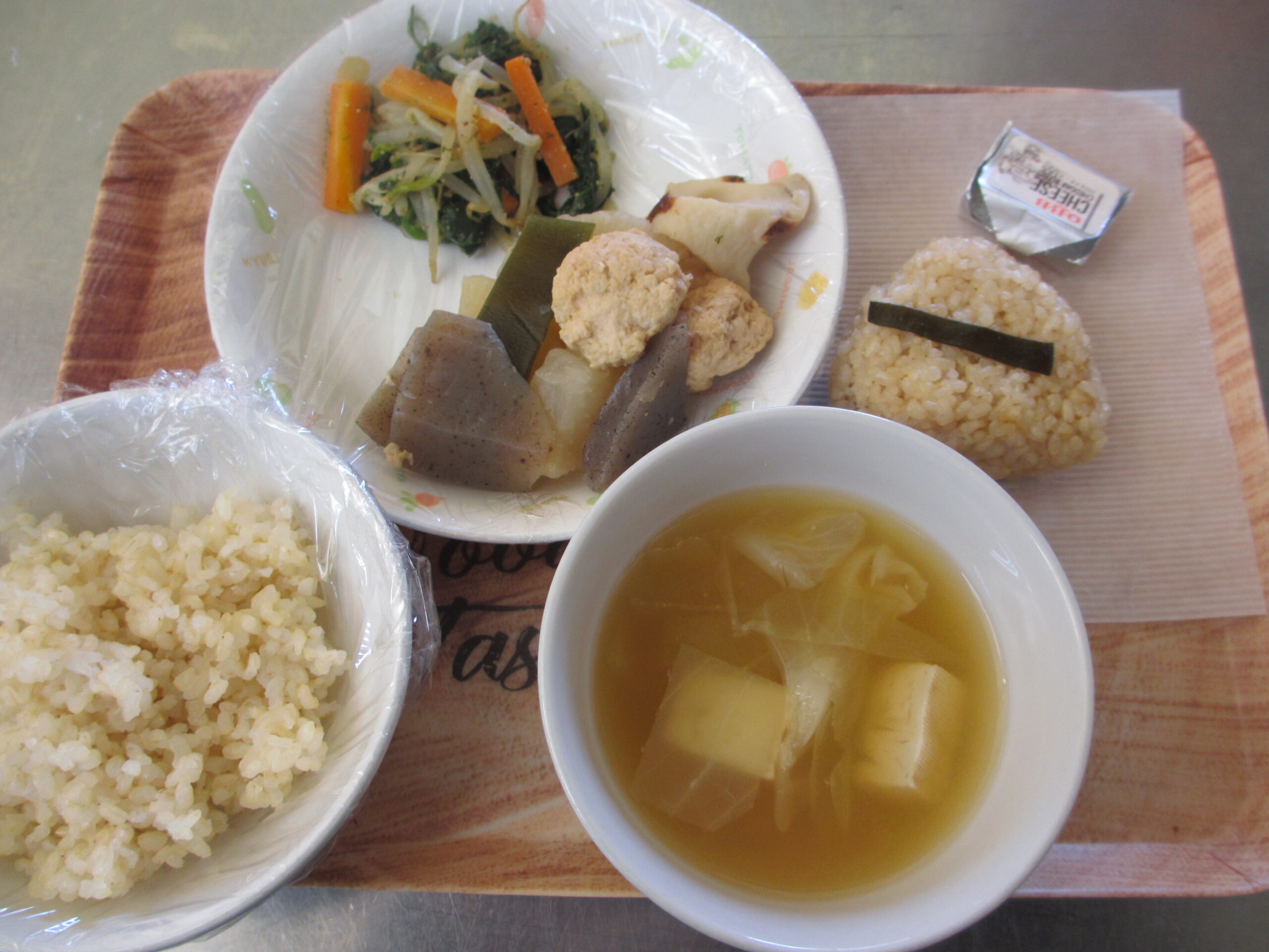 おやつ:お茶 チーズ 茶飯おにぎり