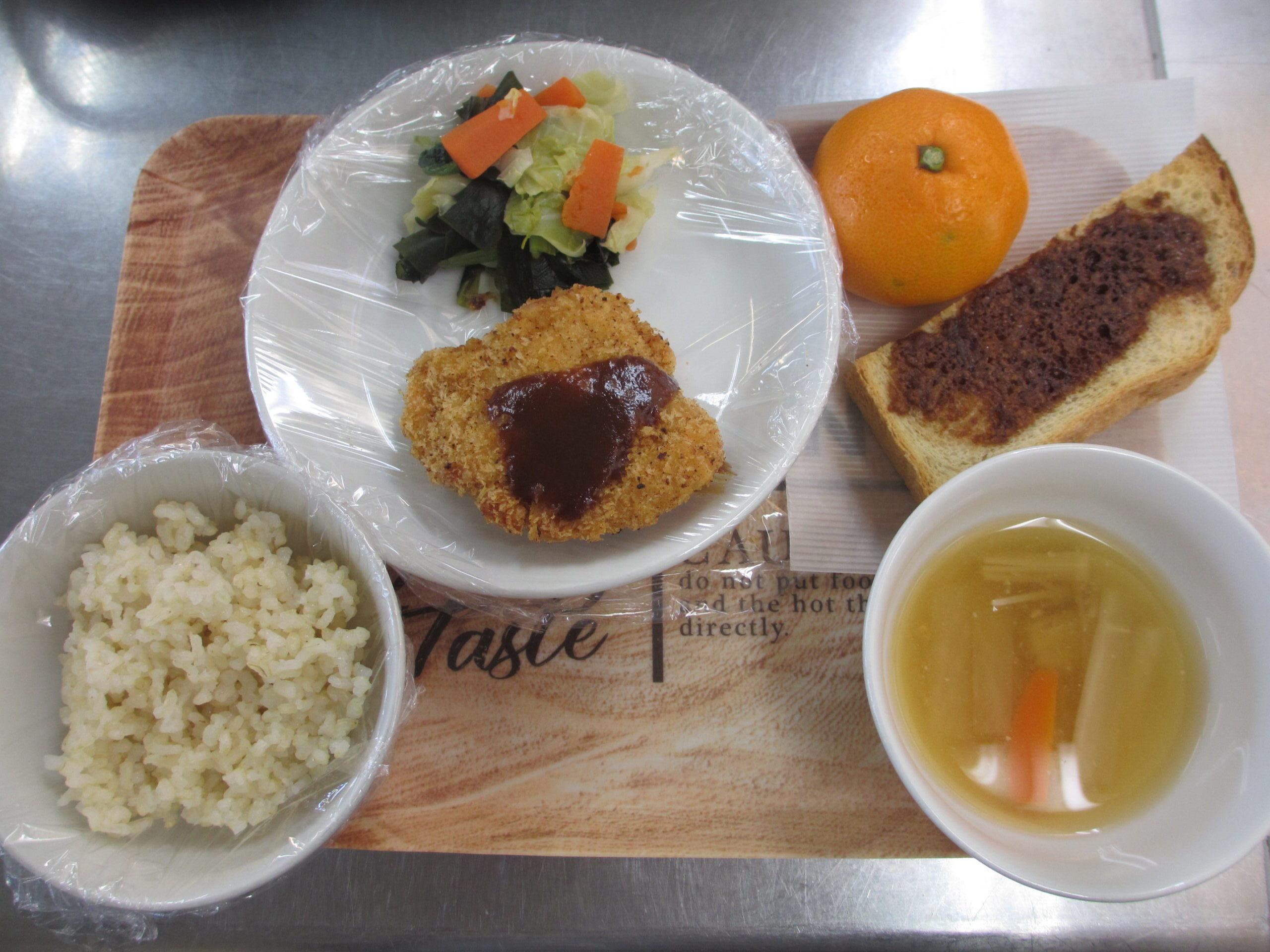 おやつ:牛乳 みかん シナモントースト