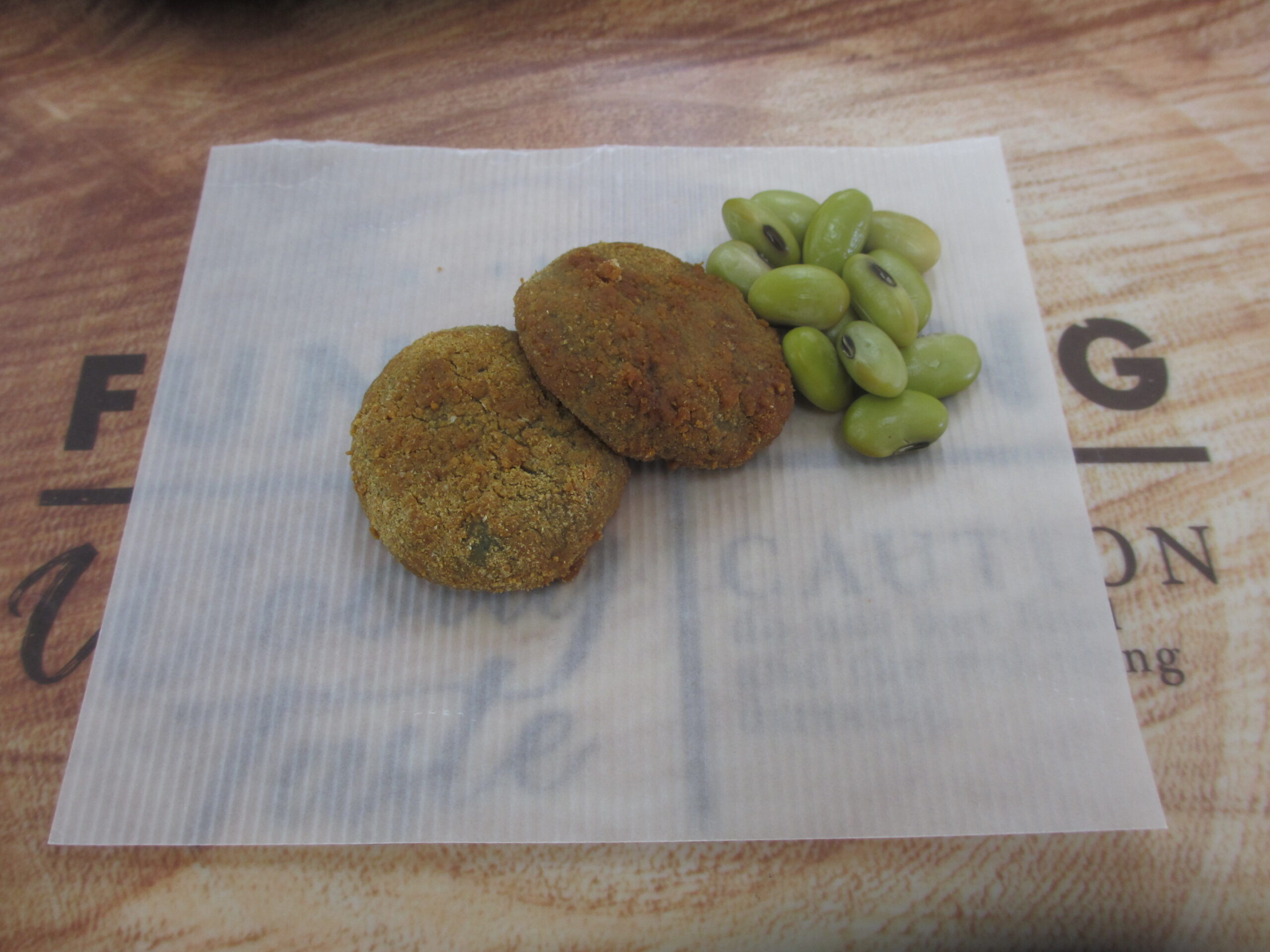 おやつ:お茶、浸し豆、ほうれん草だんご