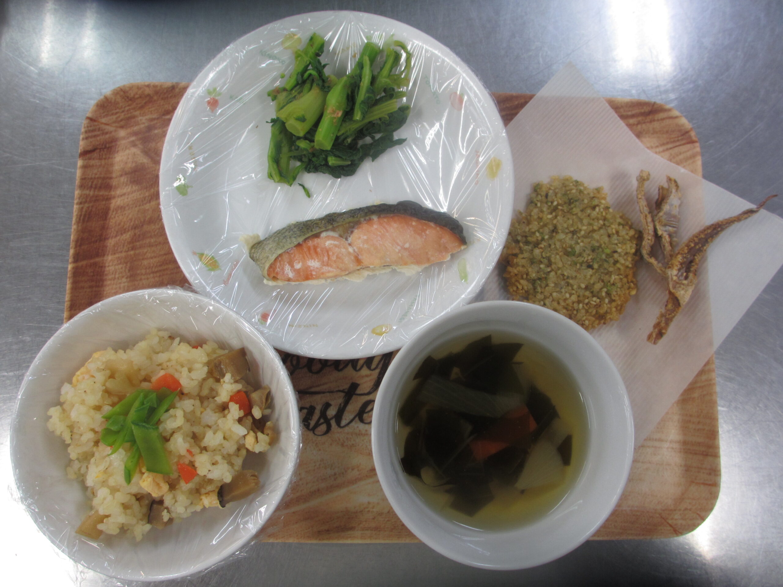 昼食:ひな寿司・鮭の塩焼き・菜の花のおかか和え・すまし汁