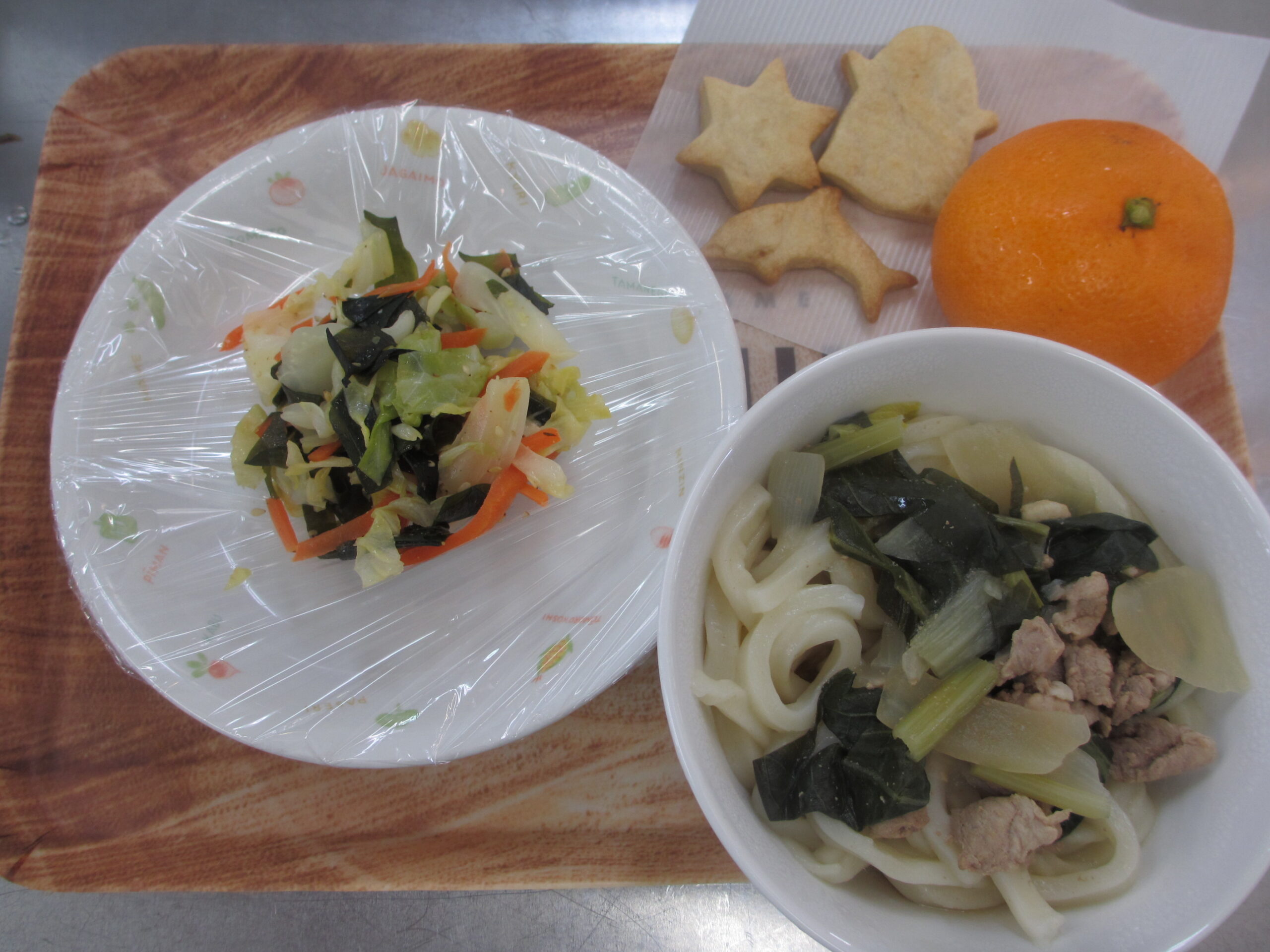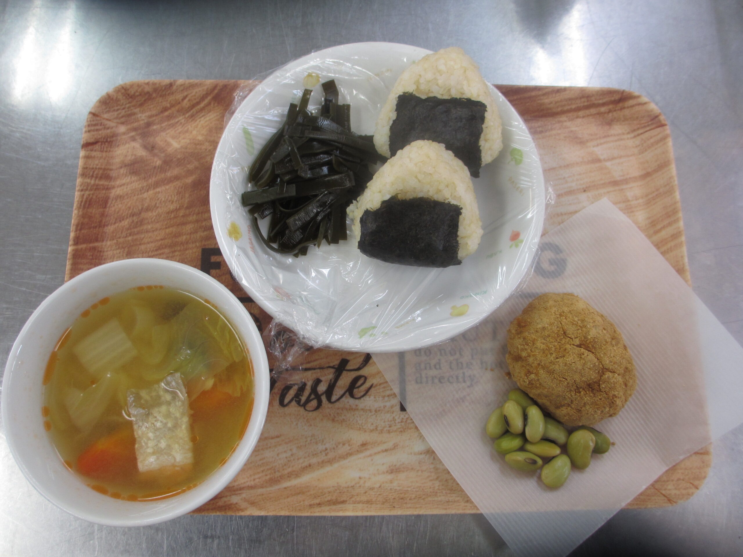 昼食:のりおにぎり・昆布の佃煮・石狩汁
