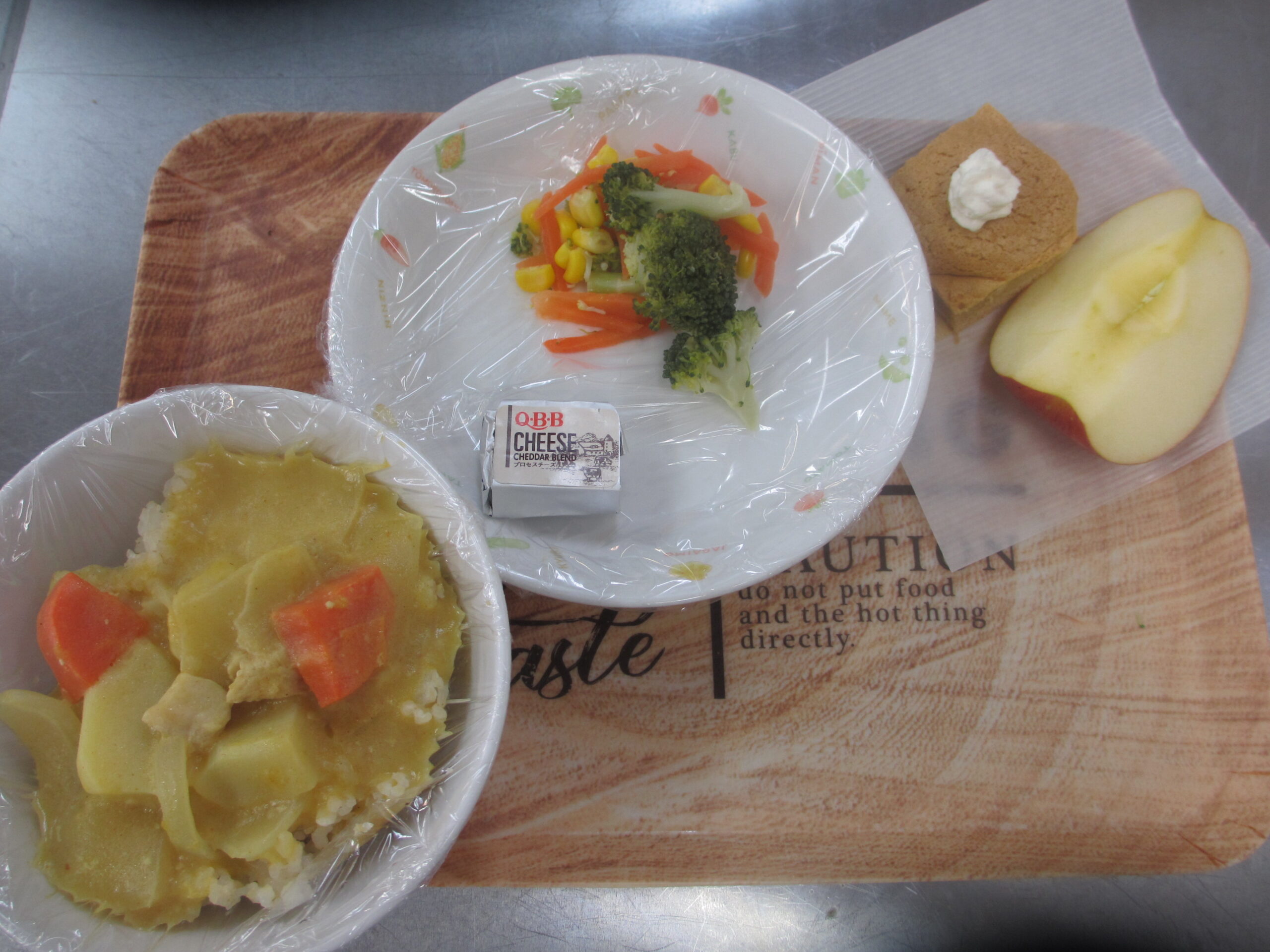 昼食:チキンカレー・ブロッコリーサラダ・チーズ
